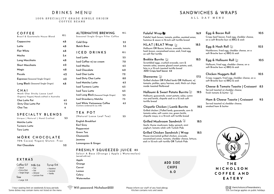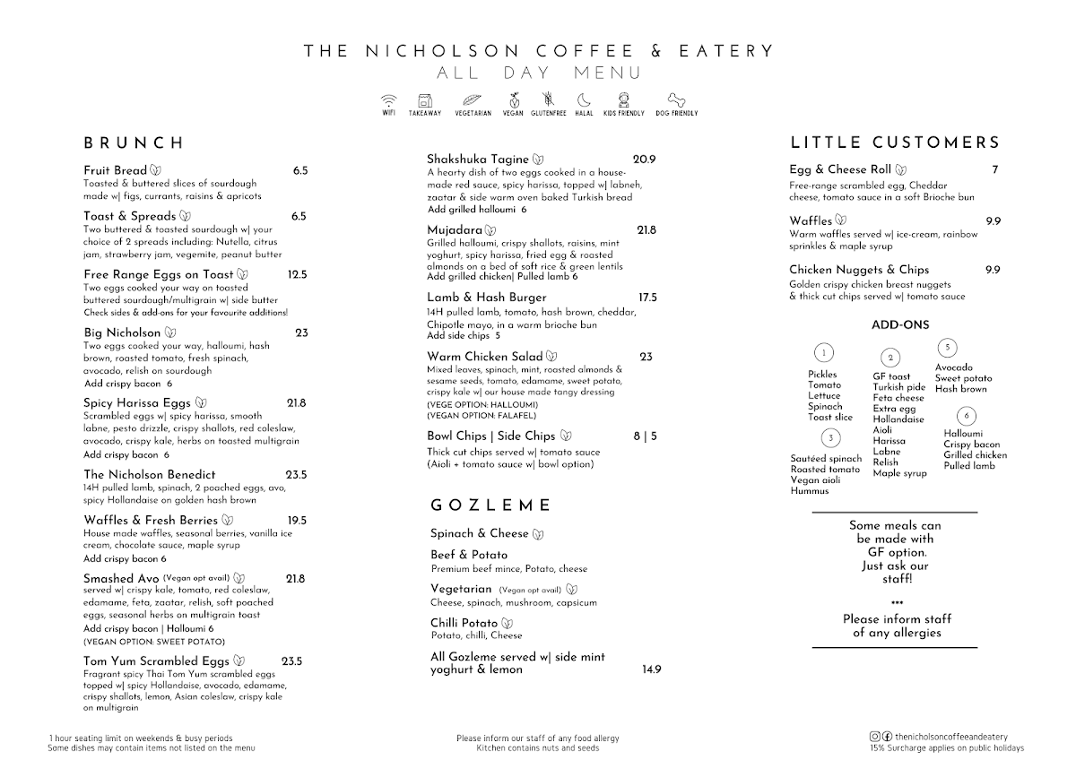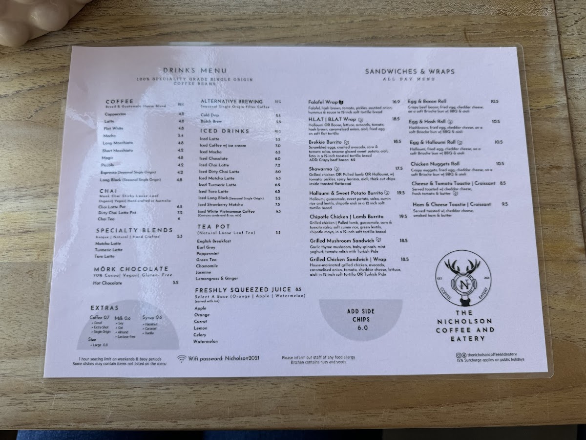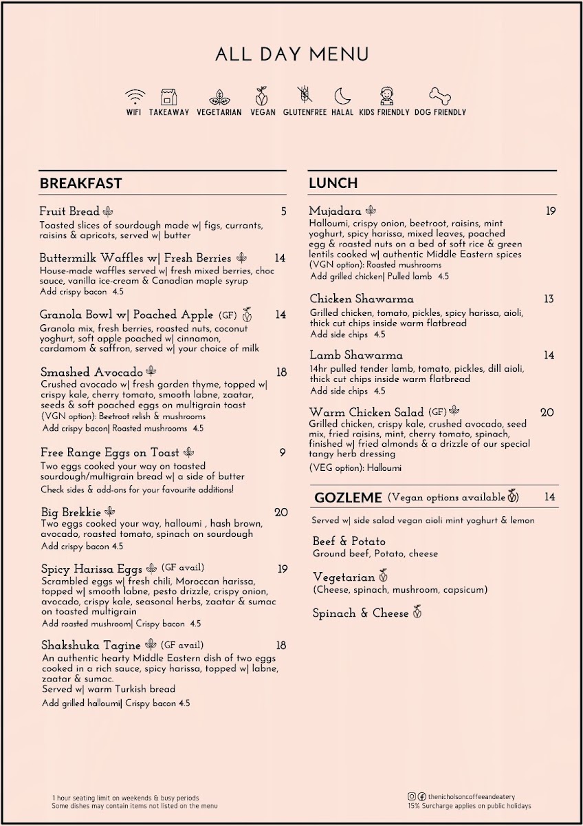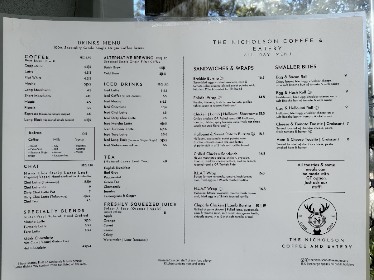 Introducing the Menu at THE NICHOLSON COFFEE & EATERY